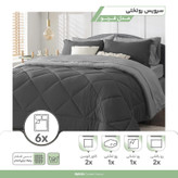 سرویس روتختی دو نفره فرنو دو نفره 6 تکه شامل روبالشی، روتشکی، روتختی و کاور کوسن است که به بهبود کیفیت خواب کمک میکنند. روبالشیها با طراحی زیبا و کیفیت بالا، خوابی راحت را تضمین میکنند. روتشکیها از تشک محافظت کرده و به راحتی قابل شستشو هستند و روتختی اصلی با طراحی مدرن و رنگبندی جذاب، جلوهای زیبا به اتاقخواب شما میبخشد. کاور کوسنها نیز با هماهنگی کامل با سایر اجزاء زیبایی و راحتی بیشتری به تخت خواب اضافه میکنند. این سرویس برای دو سایز مختلف تخت 140x200 سانتیمتر، 160x200 سانتیمتر مناسب است اما سایز اصلی آن 200×180 است. این ابعاد متنوع به شما کمک میکند که با خیال راحت این سرویس خواب را تهیه کنید. تمیز نگهداشتن سرویس روتختی فرنو بسیار ساده است. میتوانید آن را هم با دست و هم با ماشین لباسشویی شستشو دهید. این ویژگی باعث میشود سرویس خواب شما تمیز و کاملا بهداشتی باقی بماند. همچنین این سرویس روتختی دارای طراحی شیک و زیبا است که برای هر فصلی از سال مناسب است و به علت جنس پنبه-پلیاستر چروک نمیشود و همواره ظاهر مرتبی دارد.
